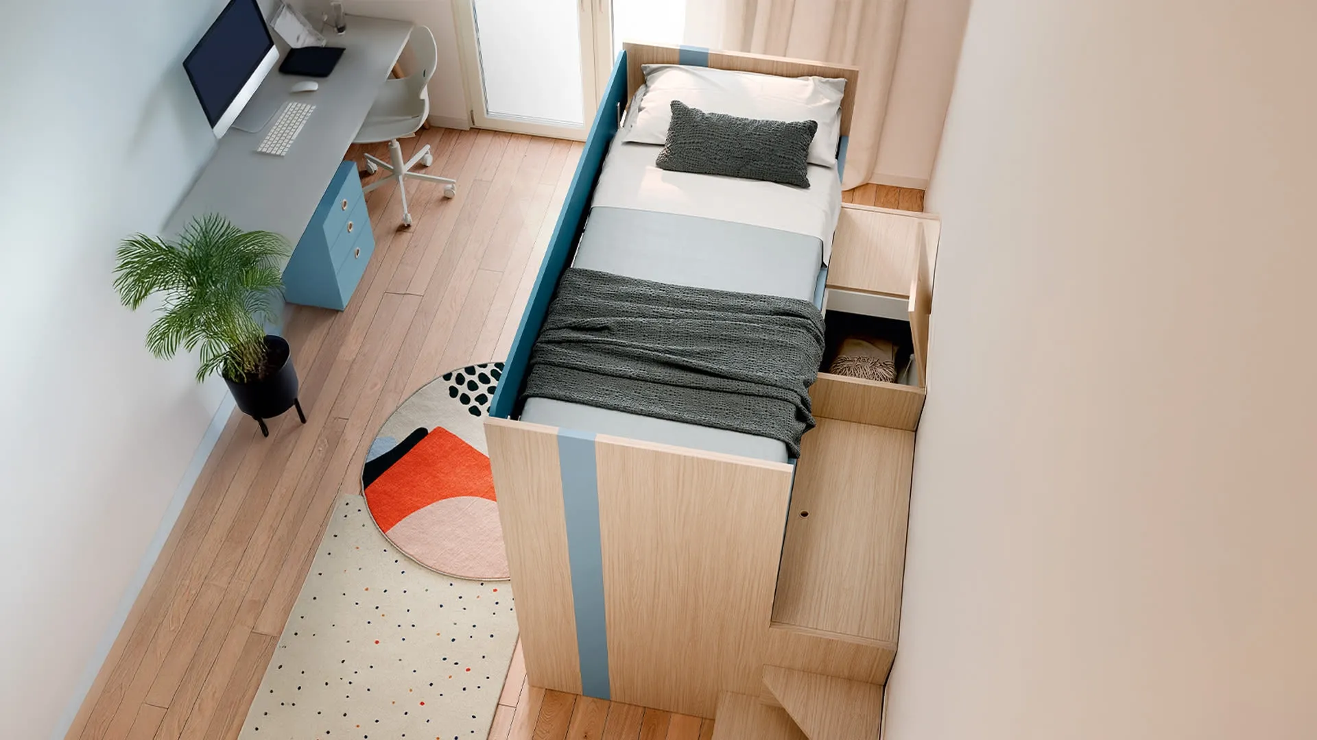 Se la stanza ha misure ridotte, sono diverse le soluzioni che Nidi propone, sempre capaci di abbinare ergonomia e sicurezza. Le Camerette con letti a castello per bambini del noto e conosciuto brand sono disponibili in svariate versioni, che rispondono sempre alle richieste dei bambini. Materiali pregiati e vernici ecologiche contraddistinguono le proposte del brand, tra cui troverai anche quelle moderne con letti a castello ideali per te. Gli elementi accessori disponibili per le Camerette con letti a castello di Nidi sono sempre personalizzabili, per scongiurare ogni difficoltà di spazio e praticità.