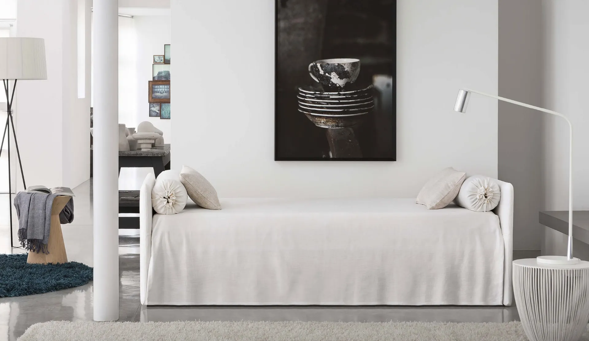 Ottieni informazioni sul Letto singolo Duetto con letto estraibile di Flou nella fotografia: è ideale per creare perfettamente un ambiente accogliente, bello e ben organizzato, ideale per i tuoi figli. I Letti singoli con letto estraibile per la stanza dei più piccoli disponibili in negozio risolvono qualsiasi problematicità di spazio e funzionalità, assicurando allo stesso tempo uno stile unico. Una ricca gamma di letti moderni in tessuto ti attende: il brand Flou propone diverse versioni di letto, che rispondono sempre alle richieste dei bambini. Materiali di qualità e vernici ecologiche caratterizzano le proposte della marca: se la stanza ha dimensioni ridotte, sono disparate le soluzioni disponibili, sempre capaci di congiungere ergonomia e sicurezza.