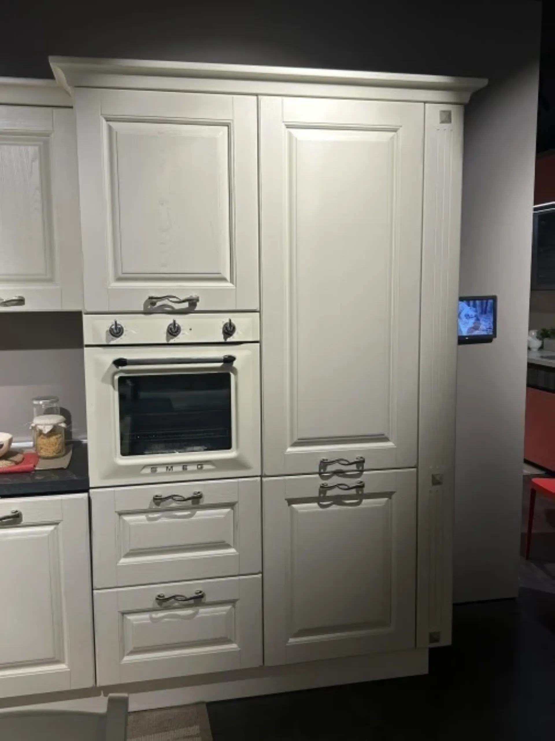 - Frigocongelatore Smeg: modello combinato da incasso (altezza nicchia 178 cm) con cerniere a traino e porta reversibile, capacità netta totale è di circa 268-277 litri, suddivisa in 196-202 litri per il vano frigorifero e 72-75 litri per il congelatore, classe di efficienza energetica A+ (vecchia normativa) o E (nuova normativa), vano frigorifero ventilato (per una migliore distribuzione della temperatura), ha sbrinamento automatico e illuminazione interna a LED, con ripiani in cristallo e due cassetti per frutta e verdura, vano congelatore ha sbrinamento manuale o automatico a seconda della fonte consultata, dotato di 3 cassetti e una capacità di congelamento di 4 kg in 24 ore