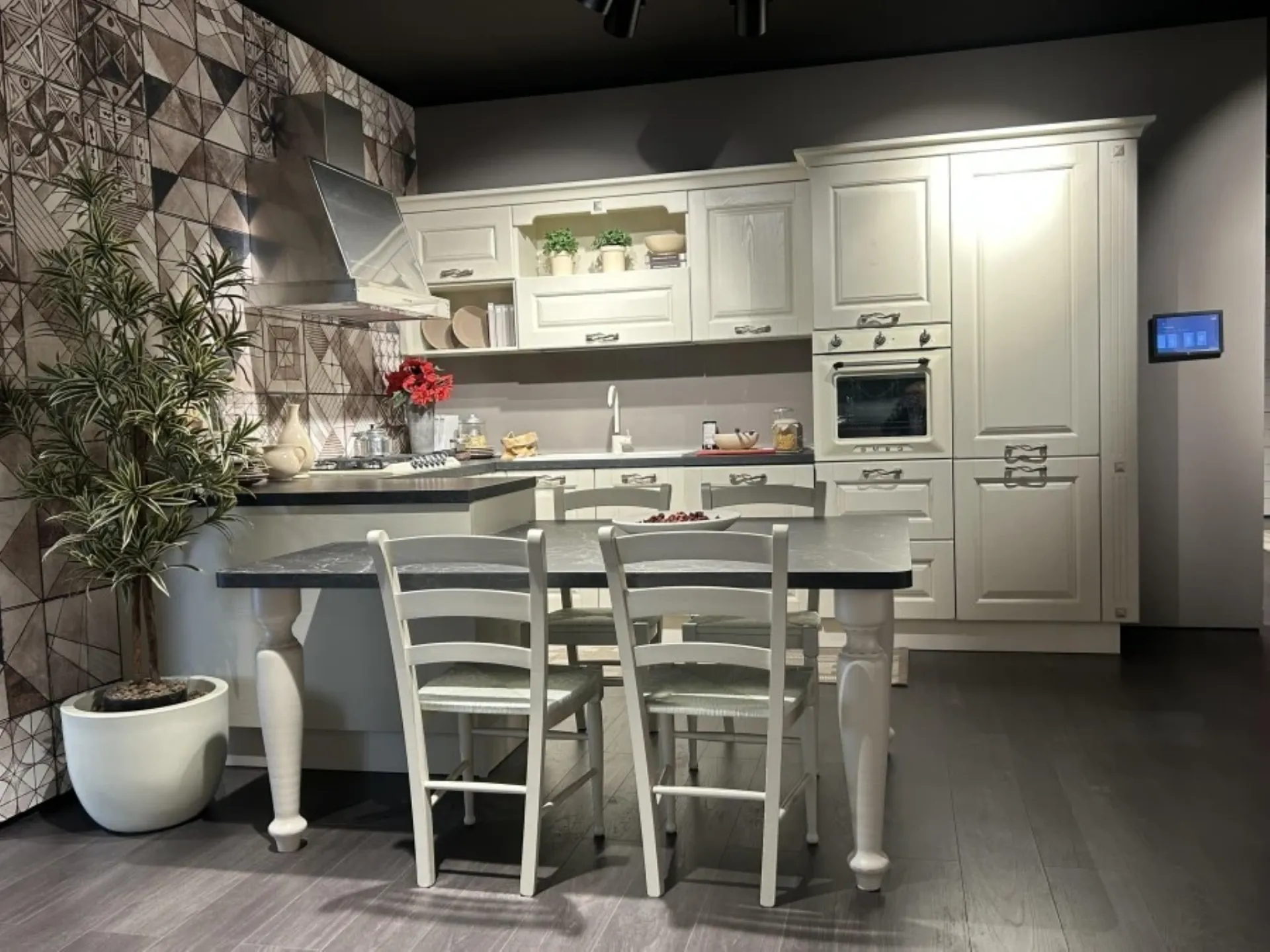 Acquistare la cucina Lube Laura con penisola significa scegliere un'armonia perfetta tra stile classico e funzionalità moderna. La sua penisola è l'elemento chiave che trasforma l'ambiente: funge da spazioso piano di lavoro e da invitante zona conviviale, creando una connessione fluida tra la cucina e il living. Questo modello Lube è un investimento duraturo grazie alla qualità costruttiva e al design intramontabile che non teme le mode. Offre un'organizzazione degli spazi superiore, rendendo ogni gesto in cucina più semplice ed efficiente. La Lube Laura è il cuore accogliente della casa, ideale per chi desidera un ambiente che non sia solo bello da vedere, ma intensamente da vivere e condividere. È la soluzione che unisce l'eleganza all'eccellenza pratica.